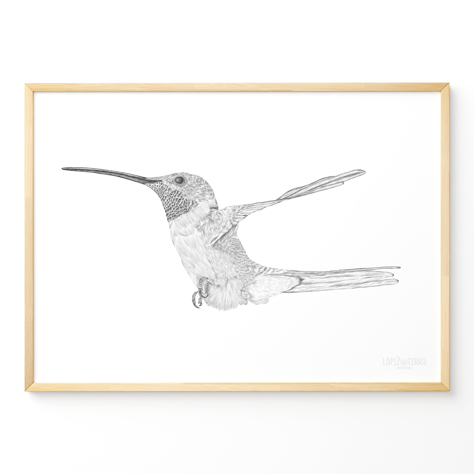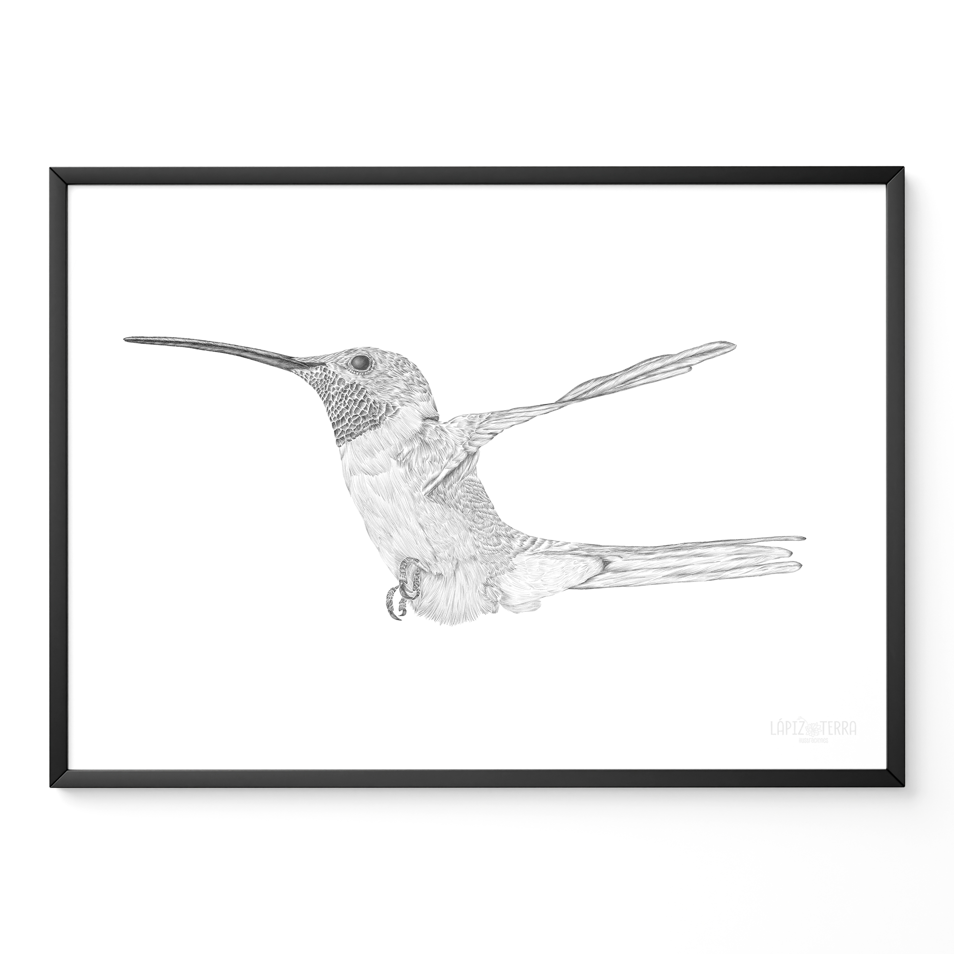 Cuadro ilustración Picaflor de Arica B&N